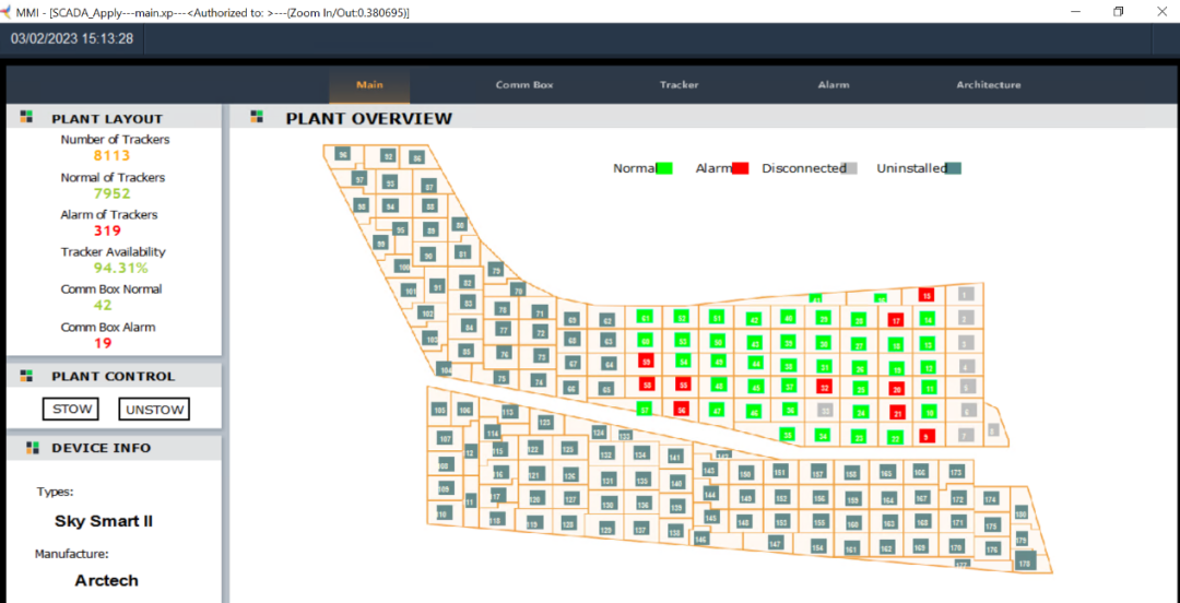 First of all, Tracker SCADA collects the information of the PV support bracket in real time. After conducting the overall processing for the real-time information, Tracker SCADA can accurately adjust the PV support bracket, and automatically optimize the inclination and direction of the PV panel according to the position of the Sun and weather conditions, so as to capture the solar energy as much as possible, or under a bad weather condition such as wind, sand, rain, snow, hail, etc., it can provide precision guidance to reduce or even avoid the damage to PV panels caused by natural disasters. Through these, Tracker SCADA can improve the power generation efficiency and prolong the PV panel’s service life.