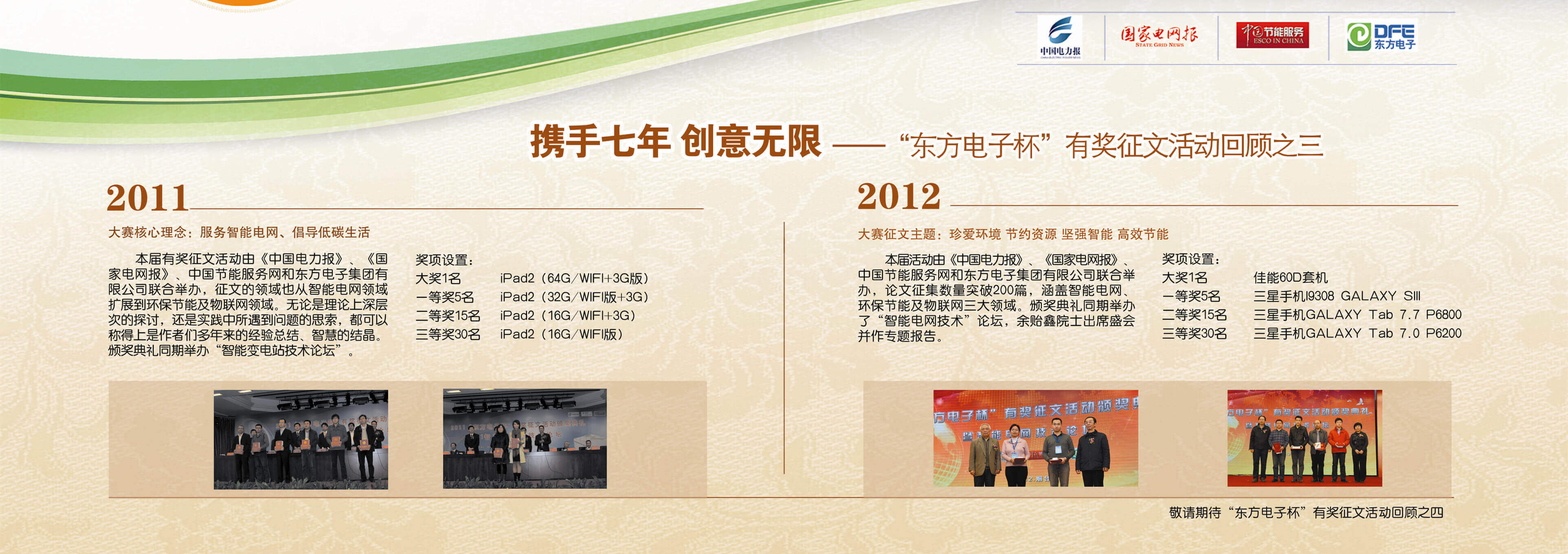 2007年至今,由乐鱼电子联合《中国电力报》、《国家电网报》、《中国节能服务》杂志共同举办的“乐鱼电子杯”有奖征文活动已成功举办七届,在这个过程中,乐鱼收获了很多客户智慧的结晶、收获了客户参与的热情,成功搭建了与客户交流的平台和沟通的纽带。